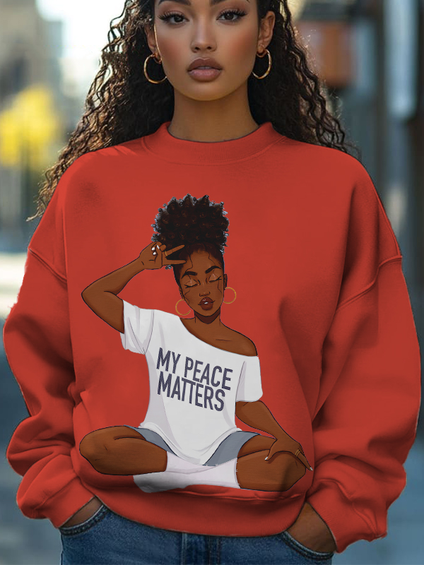 Women's My Peace Matters Slogan Print Cotton Long Sleeve T-Shirt Thin Sweatshirt
